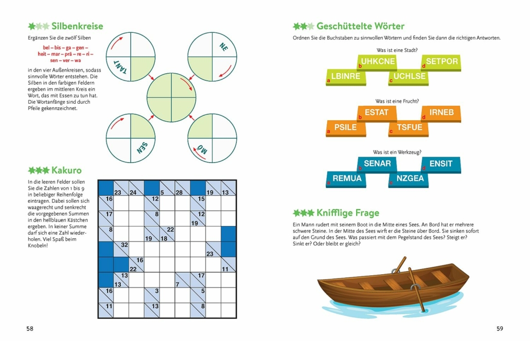 Sie aktivieren zielgerichtet Ihre grauen Zellen, verbessern unterhaltsam und effektiv Konzentration, Kombinationsgabe und Merkfähigkeit und sorgen außerdem für jede Menge Rätselspaß.