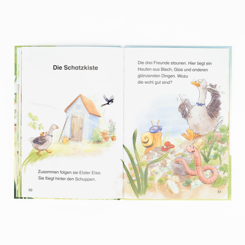 Die drei Freunde begeben sich auf Spurensuche … und staunen, weil sie nicht nur weitere Schätze entdecken, sondern am Ende einen neuen Freund gewonnen haben.