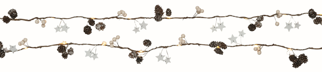 Lichterkette mit 20 warmweißen LEDs, echten Tannenzapfen und Timer-Funktion: